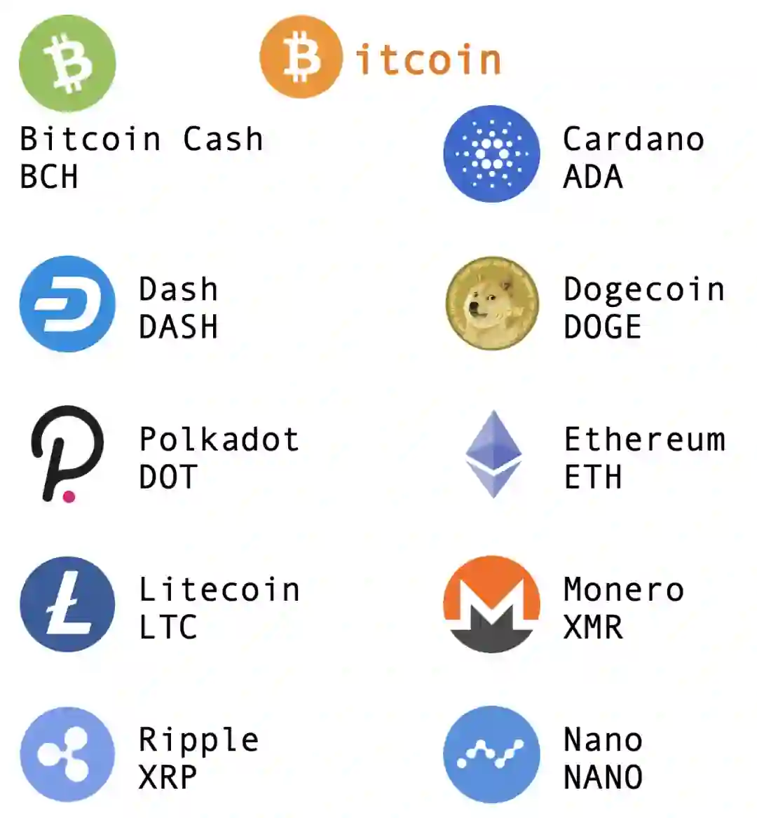 个,除了比特币以外,还有狗狗币等。