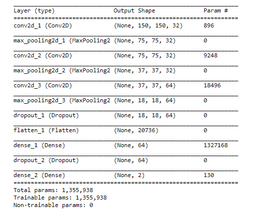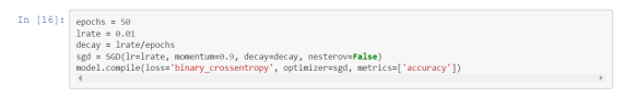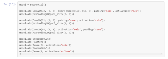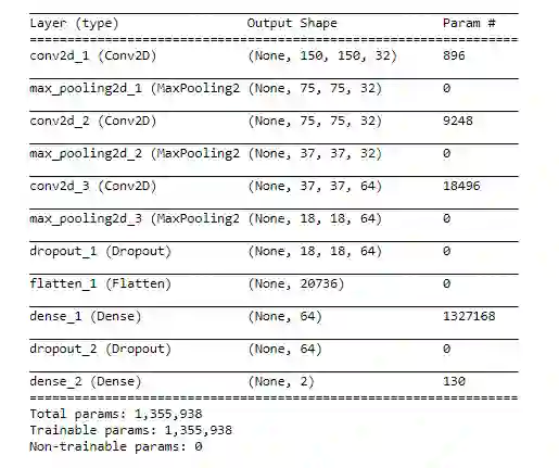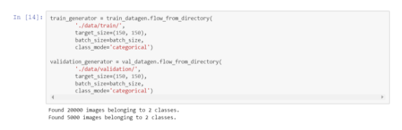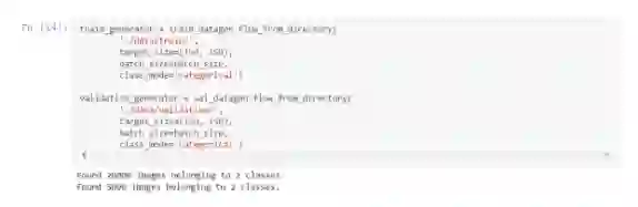 我们会训练模型50个epoch。每个epoch中,会有20000张独特扩增照片以每批32张的方式流入网络,做正向传播和反向传播,用SGD来调整权重。使用多个epoch也是为了防止过度拟合。