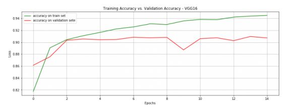 只15个epoch,准确率就达到了90.7%。效果很不错。而且在我的笔记本电脑上,每个epoch只需要大概1分钟。