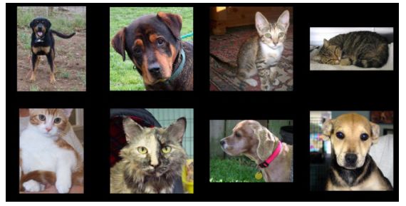 你可以看到,我们有很多图片,分辨率、拍摄角度和焦距各不相同。所有猫狗的形态、位置和颜色互相迥异,或坐着,或站着,或开心,或难过,或睡觉,或吠叫。