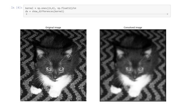 如果你仔细查看卷积后的图片,会发现它更加平滑,上面的白色像素点更少(噪音)。