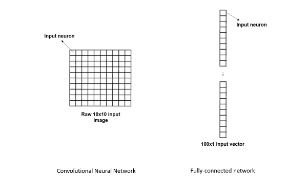 使用全连接网络,图片会首先转成一维矢量,然后作为输入量输入网络。
