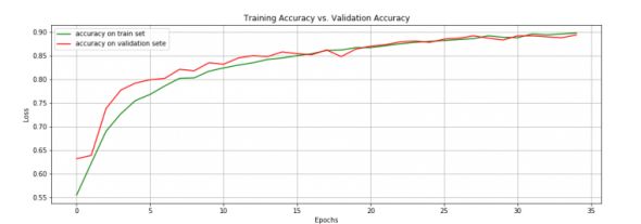 在验证集上我们的准确率达到89.4%。训练/验证误差和准确率显示在下文。