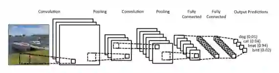 卷积神经网络是种特殊的神经架构,专门用来处理图片数据。自1989年被LeCun et al引进后,卷积神经网络已经在手写数字分类和面部识别等方面表现优秀。在过去的几年中,好几篇论文都表明了它在更有挑战性的视觉分类中也有不俗表现。最有名的要属Krizhevsky在2012年ImageNet的分类测试中破纪录的表现,他的卷积神经网络模型AlexNet的错误率只有16.4%,而第二名的错误率是26.1%。