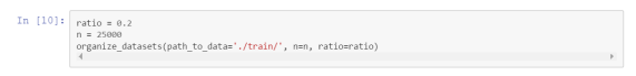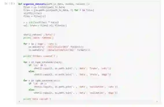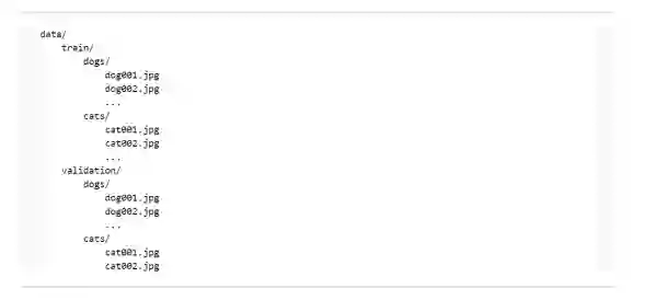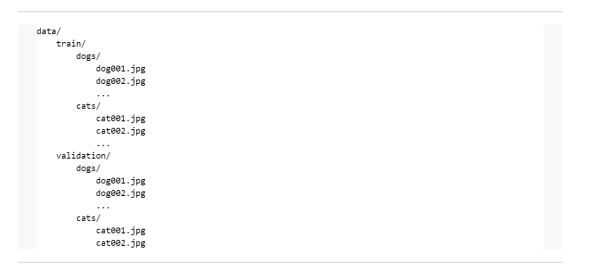 训练数据文件夹:包含了25,000张猫和狗的图片。每张图片都在其文件名中有标记。我们会用它来训练和验证我们的模型。