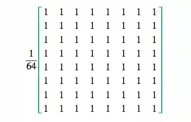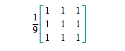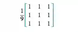 这叫做方框滤波(box blur)。 当该过滤器应用到输入图片中某个像素值上,它会截取该像素和其周围8个像素,并计算它们的平均像素值。数学上,这只是一个简单的平均算法。而视觉上,它能弱化图片转化的差异。