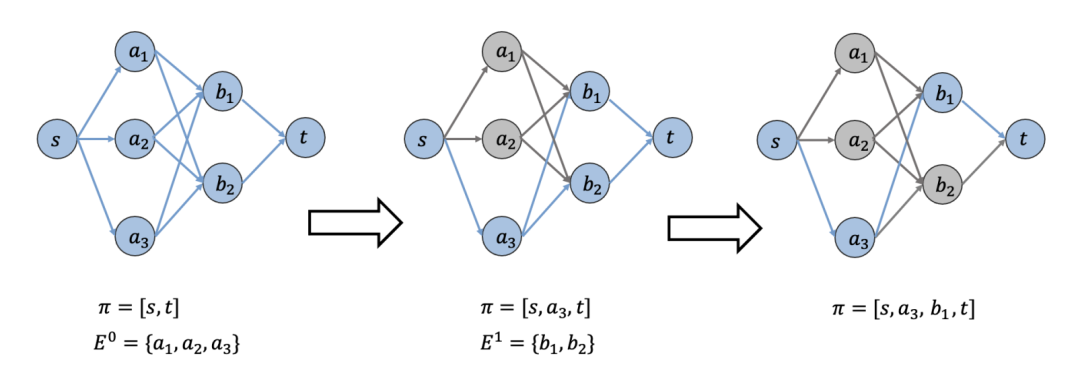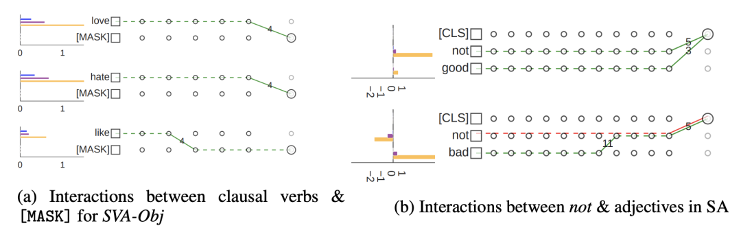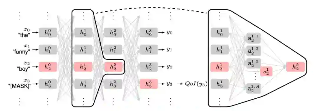 通过将 BERT 视为一个计算图,作者重申了这个问题:给定一个源节点 s 和一个目标节点 t,我们寻找从 s 到 t 的重要节点模式,该模式显示了来自 s 的影响如何从一个节点到另一个节点遍历,最后到达 t。在较小的网络中,可以采用从 s 流向 t 的影响量对所有路径进行排序的详尽方法。然而,类似的方法缺乏对像 BERT 这样的大型模型的可扩展性。因此,作者提出了一种方法来贪婪地将搜索空间从所有可能的路径缩小到特定模式,将抽象模式提炼为更具体的模式,保持较高的影响力。