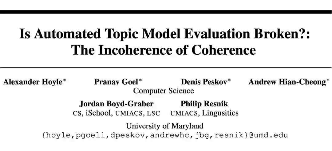 这篇论文作者对没有人工判断的全自动评估的有效性提出了质疑:自动评估产生了模型之间的区别,而相应的人工评估则没有。作者提出神经主题模型评估的实践存在验证差距:尚未使用人体实验验证神经模型的自动一致性。并且使用自动化主题建模基准方面存在巨大的标准化差距。