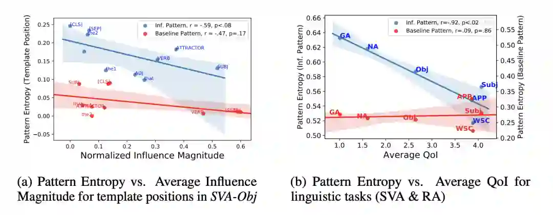 基于注意力的 transformer 模型(如 BERT)表现良好,但信息如何从输入 token 流向输出预测尚不清楚。作者引入了一种解析 transformer 性能的方法——影响模式。影响模式是通过 transformer 模型的路径集的抽象,量化和本地化信息流到通过一系列模型节点的路径。通过实验,作者发现 BERT 中的大部分信息流都通过 skip 连接而不是注意力头。作者进一步表明,跨实例模式的一致性是一种评价 BERT 性能的指标。最后,作者证明了模式比以前基于注意力和基于层的方法更能解释模型性能。