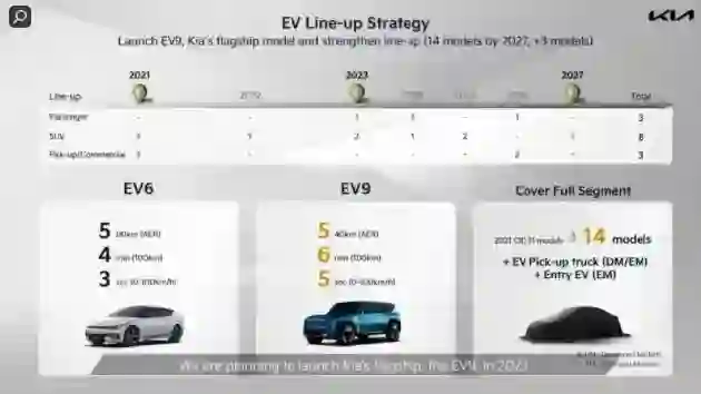 据报道,从明年开始,起亚每年将推出至少两款新的电动汽车,到2027年将电动汽车的产品阵容扩大到14款。除了2021年推出的起亚EV6以及即将推出的GT版本之外,起亚还计划在2023年起逐步推出EV9旗舰级SUV、两款电动皮卡,以及一款“入门级电动汽车”。