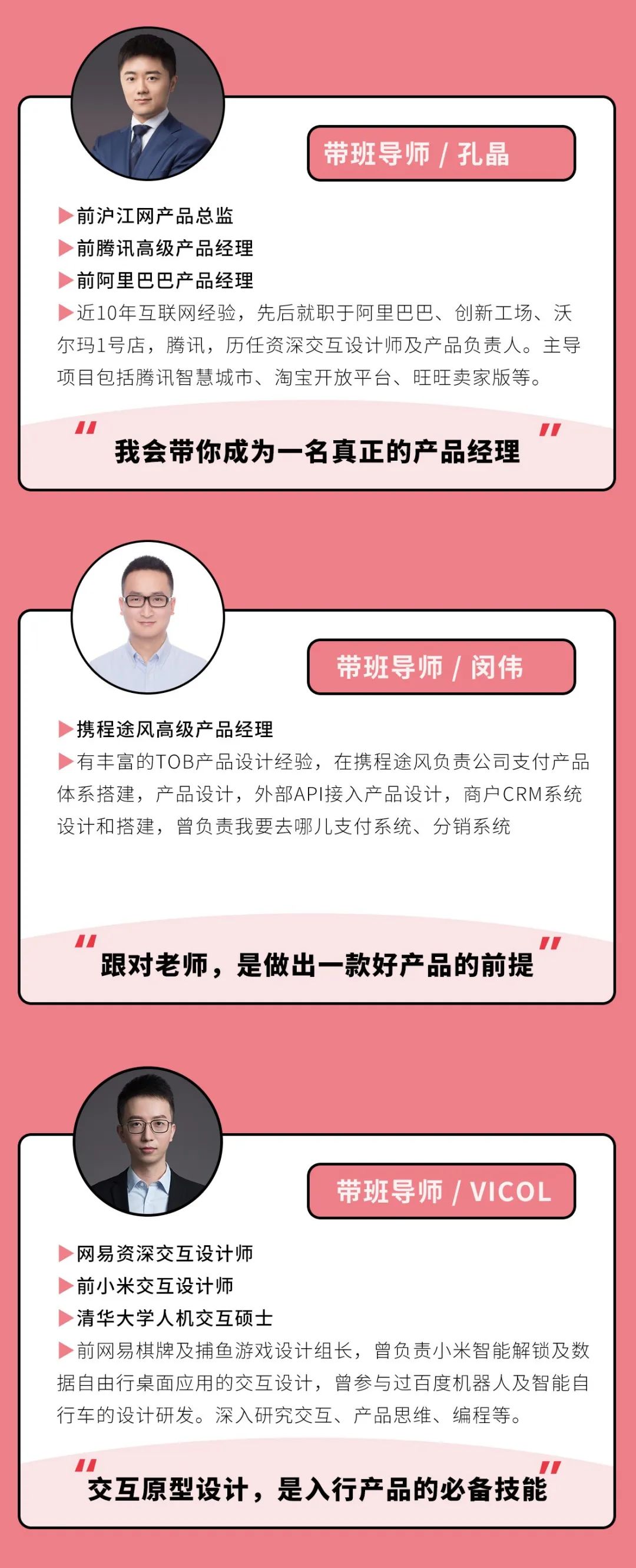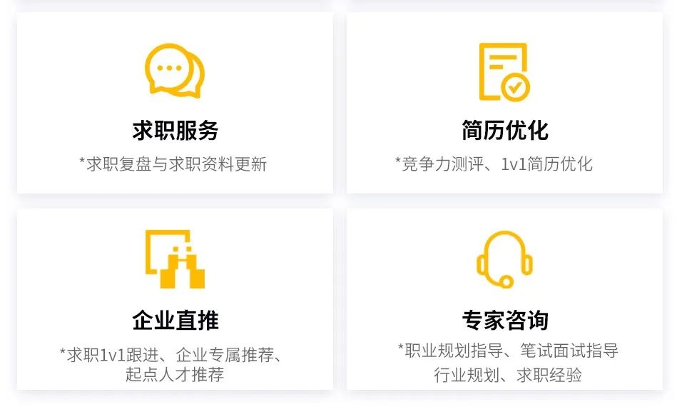 他们会为你带来比其他课程更多、更优质的教学服务——通过200+录播课、N次社群聊一聊、20+直播课、7次作业答疑、4次方向指导、1-6次1V1咨询等服务,将成熟的思维&方法论深入浅出地传授给你。