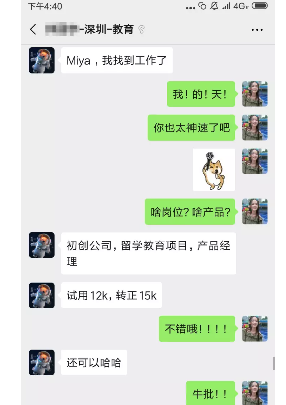 在学习结束一周左右时间,他就拿到了深圳一家做留学教育的初创公司的产品经理offer,实现了自己的入行目标。