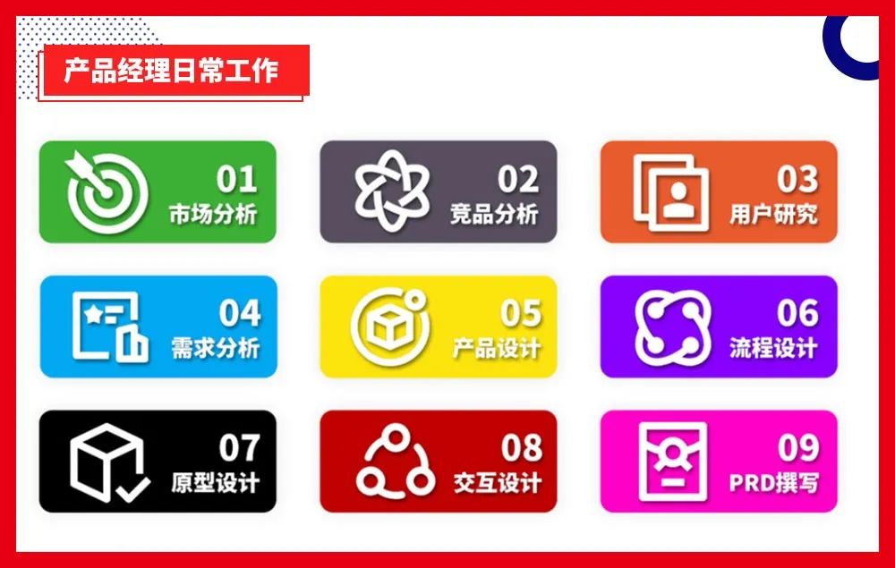 按照规划认真学完所有课程,就能掌握成为一个初级产品经理必备的9大技能项:
