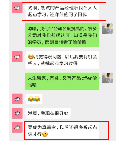 好在,着急赶上秋招而找到特训营来学习课程的小王同学最近收到了好消息,他告诉我们,面试他的产品总监对起点学院印象很好!