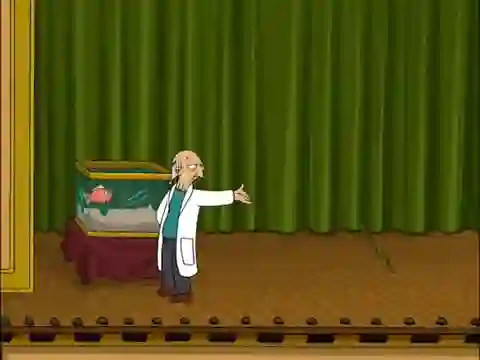 还有在《飞出个未来》(Futurama,辛普森一家的衍生剧)中,一位科学家为自己的金鱼制作反潜水泳衣,并训练它在陆地上完成一系列任务: