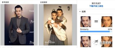 Rekognition 能够衡量两张图像中的面孔属于同一个人的可能性。借助 Rekognition,可使用相似性得分,以近乎实时的方式验证某位用户与参考照片中的人物的相似性。在这里我们选择了两幅图,一幅是胡歌本人的时装杂志的图片,一幅则是从网站上下载的《琅琊榜》的剧照图。我们看到右侧的识别结果,可以明显看到脸部的识别结果,正确率还是可信的。