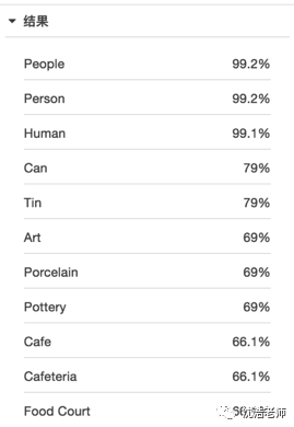 Rekognition给的识别结果是人、茶壶等关键词,而且每个类别存在的概率(即置信度)都在结果列表里给出了详细的信息。总的来说,测试结果还是比较准确。