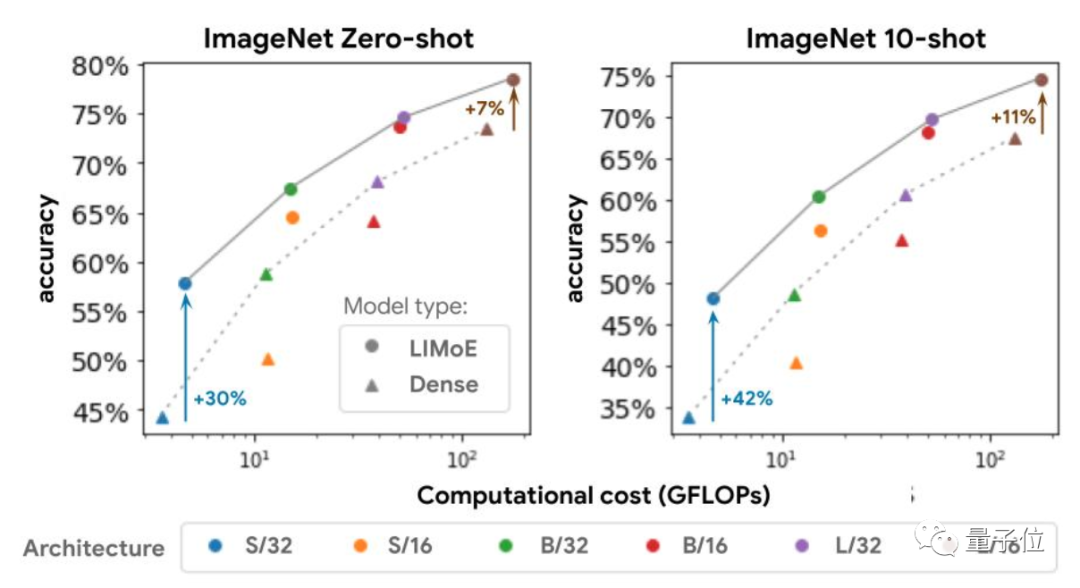 它们在模型内部设置了很多“专家”,每个“专家”只需处理对应部分的输入,根据任务情况按需使用“专家”就好。这样一来,尽管模型容量很大,但是计算成本并没有暴增。而且还不会降低性能。新方法LIMoE零样本学习任务中,可是直接超越了CLIP。怪不得网友高呼: