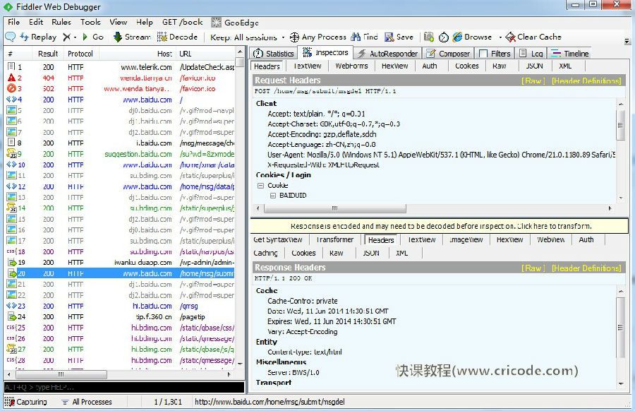 Fiddler是一个http协议调试代理工具,能够非常方便的查看HTTP通信数据。比如http请求头,响应头,传说数据大小等等。