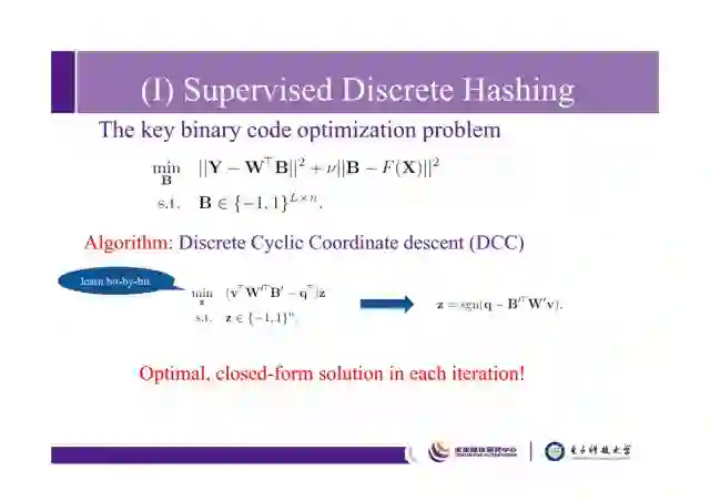 可以用迭代优化来求解该问题,依次求解W,F,B。其中最主要的就是求解B,它其实是一个二进制值优化问题。