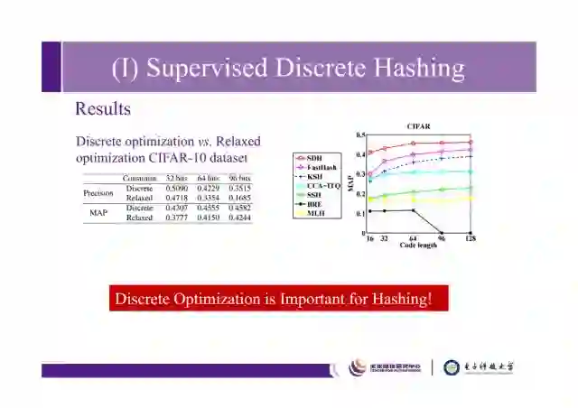 我们从2015年开始研究离散优化问题,试图在不去掉binary constraint的条件下去解哈希问题,这是哈希和传统流形学习方法的区别,我们希望能够求解哈希的原本问题。