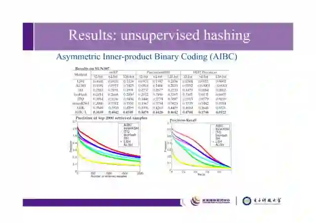 我们沿着这个方向做了很多工作,总结起来,离散优化对于哈希问题本身来说是非常重要的。简单统计了一下,有监督的离散哈希方法(SDH)不仅支持linear cascaded loss,还支持hinge loss;更重要的,它训练的复杂度是O(n)的,因此可以快速学习整个数据库的二进制值,可以把整个数据库放入训练过程中,而不需要抽取一部分训练数据学出哈希函数之后再做inference。