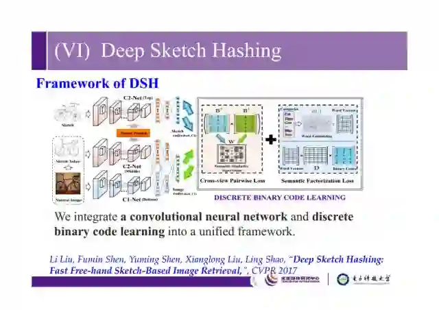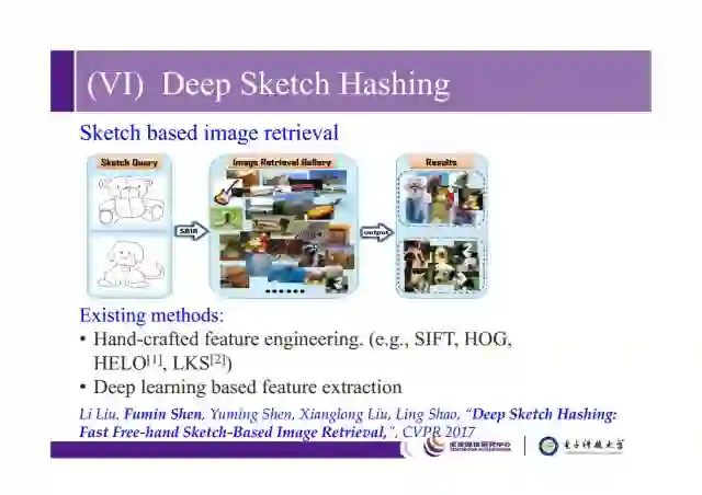 接下来简要介绍我们在CVPR2017上一个sketch retrieval问题,可以搜索和sketch query语义相关的图片,传统上有很多基于手工特征和深度特征的方法,这里我们采用哈希方法来做。