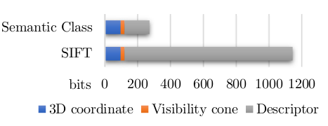 1、基于语义的描述子与基于传统SIFT描述子相比节省了大量的存储空间。无论是哪种描述子, 都需要描述地图点的位置和观测次数。