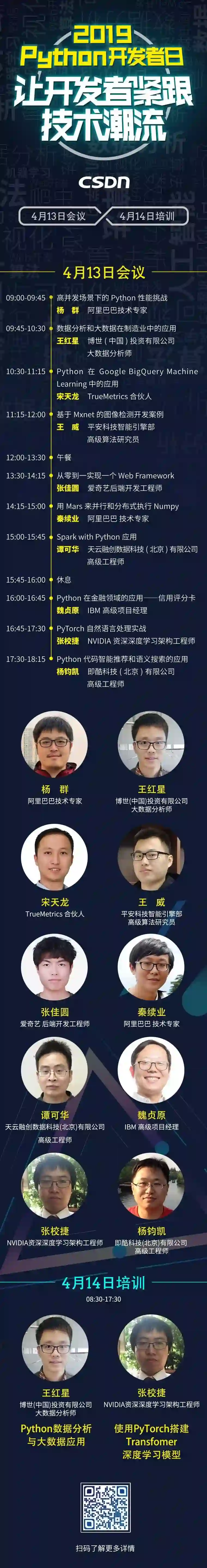 「2019 Python开发者日」全日程揭晓,请扫码咨询 ↑↑↑