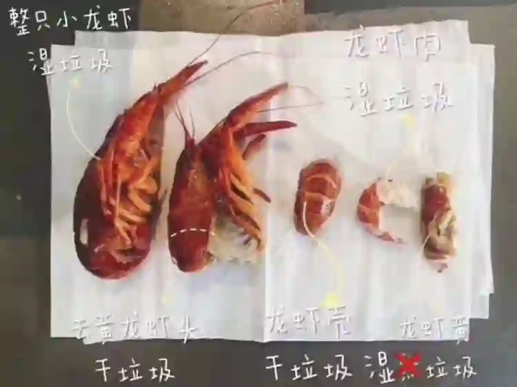 6月14日,上海市废弃物管理处回应称,上海市民可以放心吃小龙虾,因为龙虾壳、龙虾头、龙虾黄、龙虾肉全部属于湿垃圾。
