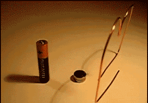 只用一个电池,一片磁铁,一根导线,你就能做出一个简易的马达哦~(不过这种做法在铜线框卡住时容易严重发热,请谨慎尝试)