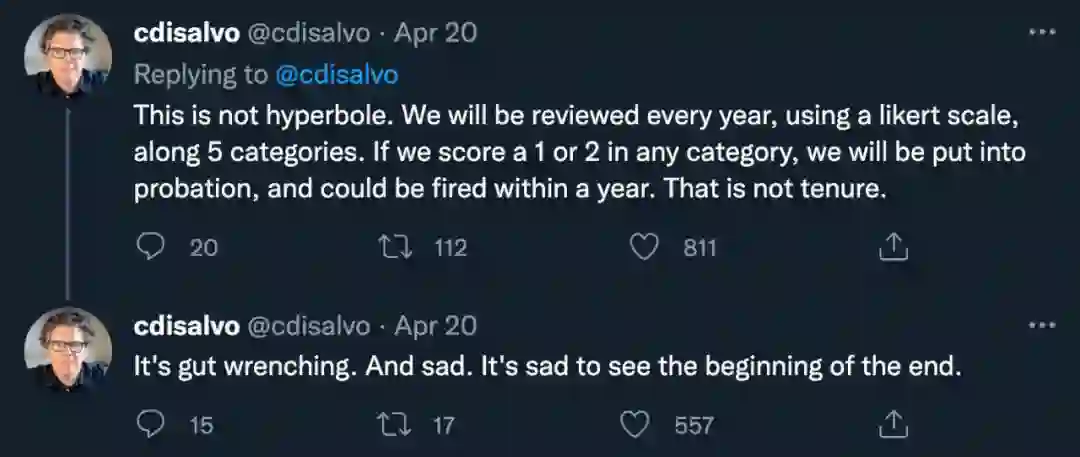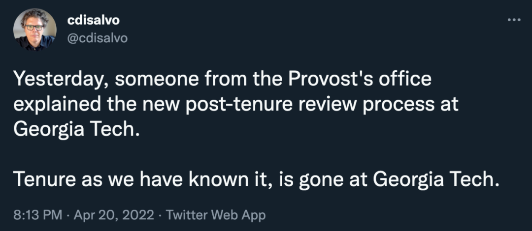 近日,佐治亚理工学院副教授 Carl DiSalvo 的一条推文引起了美国学术圈的热议。