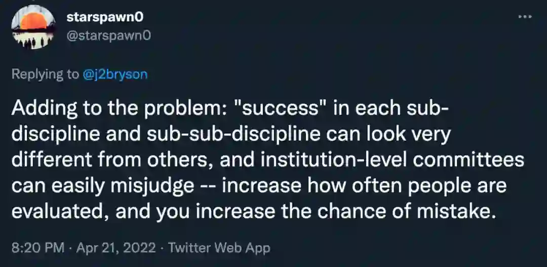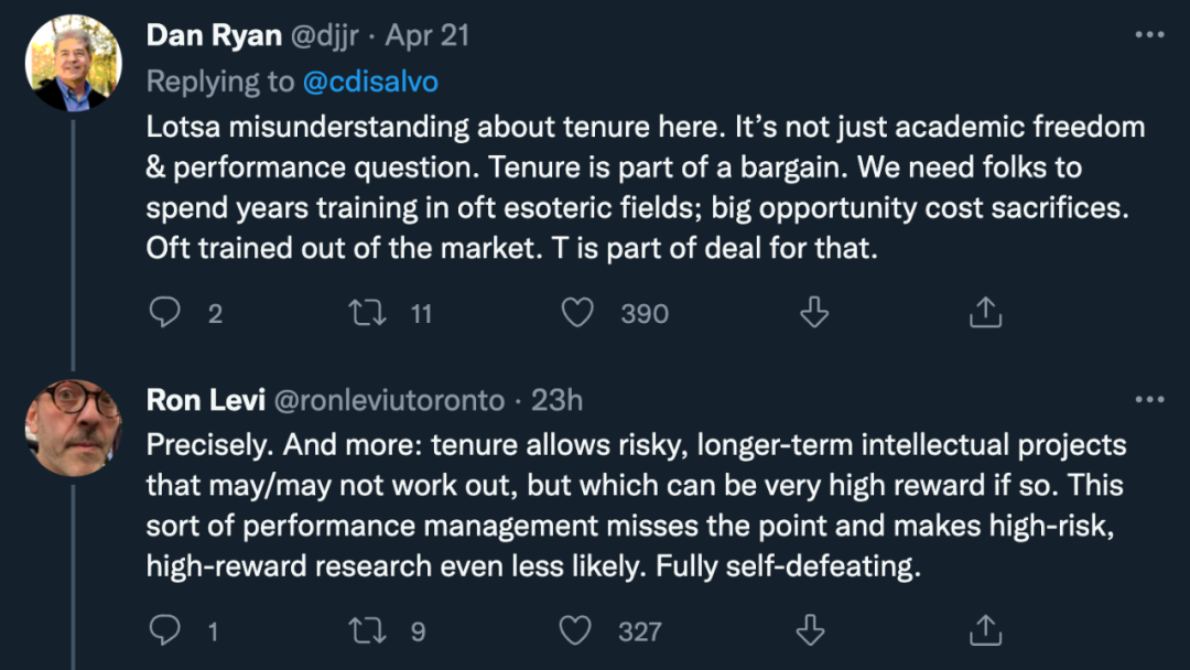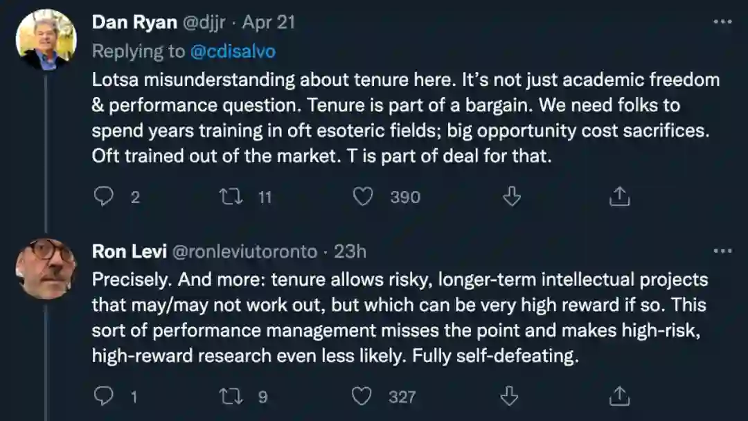 与此同时,还存在一个问题:「终身教职是一种契约,某些深奥的领域通常需要人们花费数年来钻研,同时意味着巨大机会成本牺牲。」