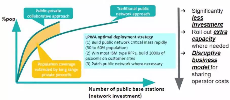 在混合模式中,运营商在全国范围内提供轻型的户外覆盖,但不同的利益相关者,如私营企业或个人可以根据其所在场所的需要来强化网络,进一步增强网络的密度。这种模式实现了双赢的私人或公共合作伙伴关系,可以共享网络的成本和收入,并使应用程序和设备最多的网络变得密集。