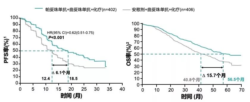 图1 CLEOPATRA研究PFS、OS结果