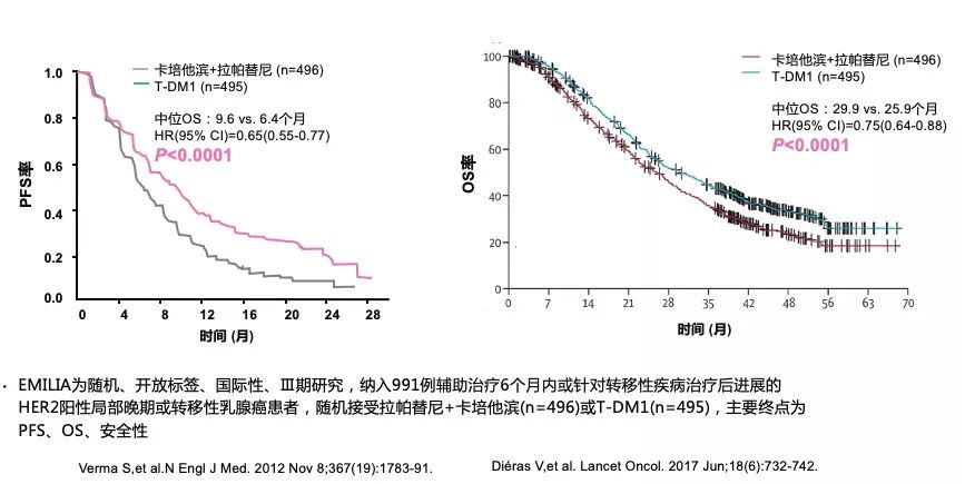 图2 EMILIA研究PFS/OS结果