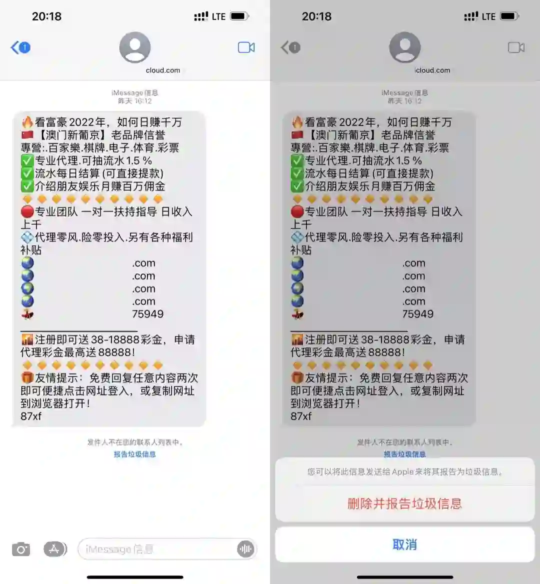 但这一套方便的体系,也没少给用户带来烦恼。几年前,iPhone 用户深受 iMessage 垃圾信息困扰,苹果还因此被央视点名批评。后来 iMessage 升级了过滤机制,加上一些垃圾短信过滤软件的出现,iMessage 上的“澳门赌场”才逐渐被压下去。