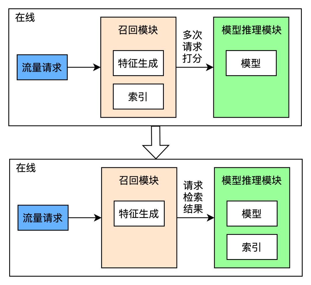 模型训练及训练后的一次性索引构建而言,一般会需要更多的时间。此外,在训练引擎中实现索引结构训练算法,并同时考虑新增item在索引中的引入问题,会带来不少额外的工程成本;