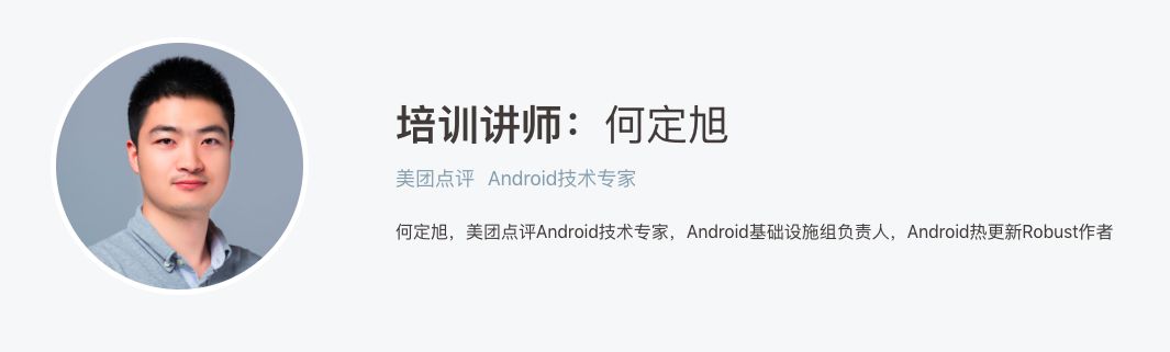 讲师简介:何定旭,美团点评 Android 技术专家,Android 基础设施组负责人,Android 热更新 Robust 作者。