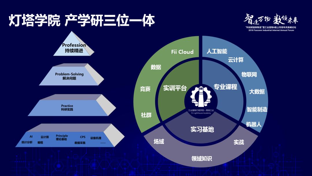 灯塔学院执行副院长孙可意介绍,灯塔学院是工业富联在工业大数据领域的人才生态运营组织,通过教育培训和训练实习,培养工业大数据人才,为全球产业伙伴提供服务。