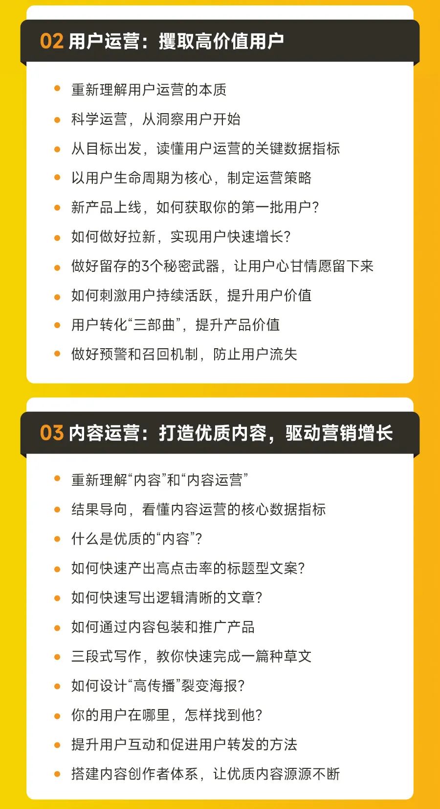 在学完这些专业知识并内化后,你可以胜任未来2-3年的运营工作!
