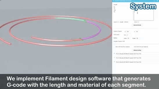 因此,研究人员设计了一款“长丝设计软件”,使用该软件可以生成每段长度和材料的G-code (数控编程语言):