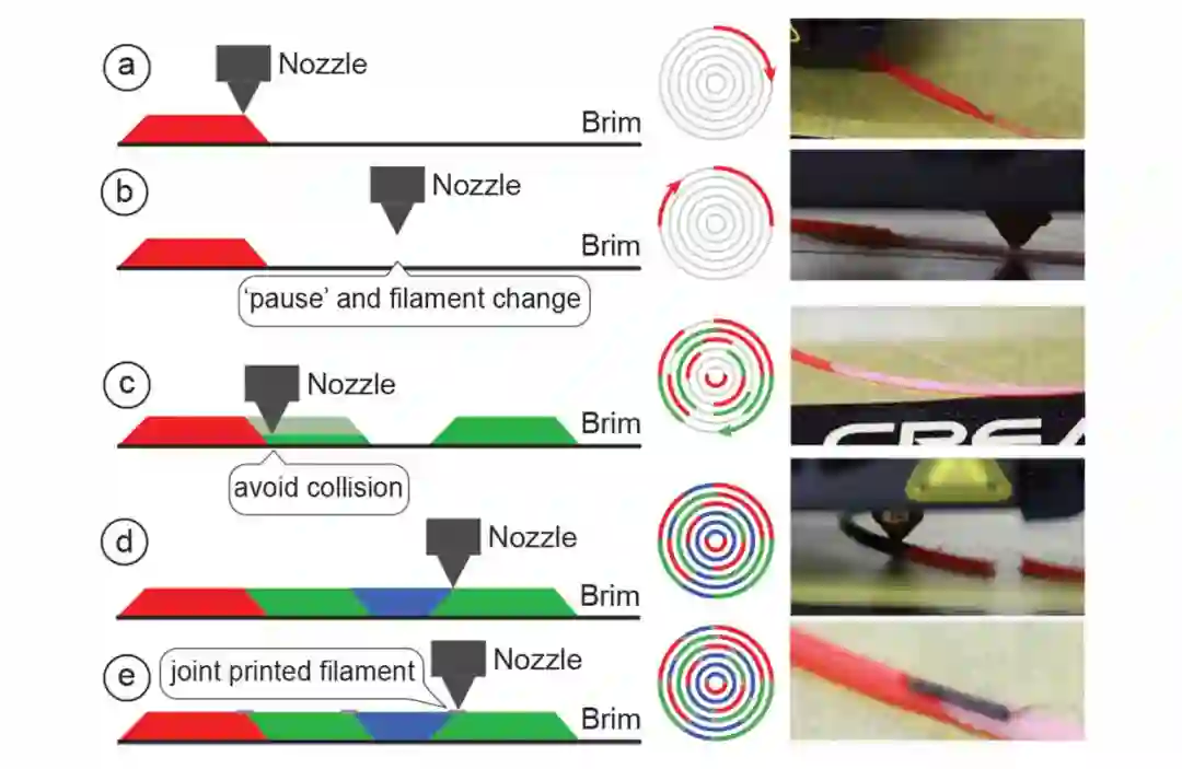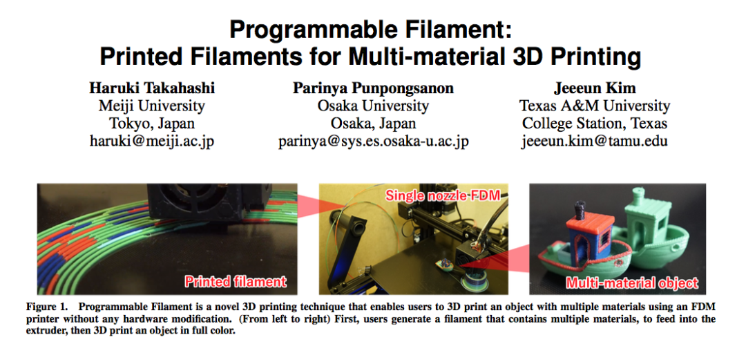 这不,在最近举行的ACM UIST大会上,来自明治大学、大阪大学以及德克萨斯A&M大学的研究人员发表了一项研究结果:仅利用FDM 3D打印机,无需增加额外硬件就能打印出结构复杂、颜色多样,甚至是不同材料组成的打印件。