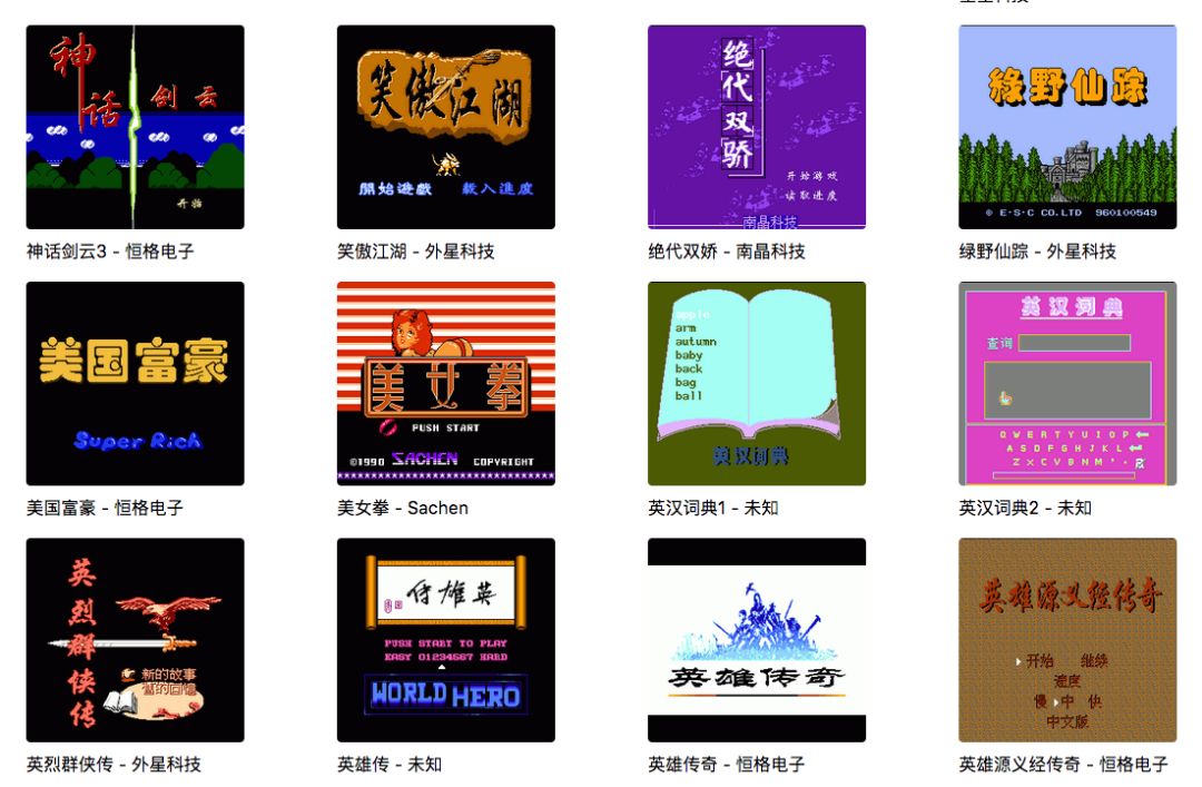 里头收录的貌似是早期的各种家用游戏,FC红白机、小霸王学习机之类的。