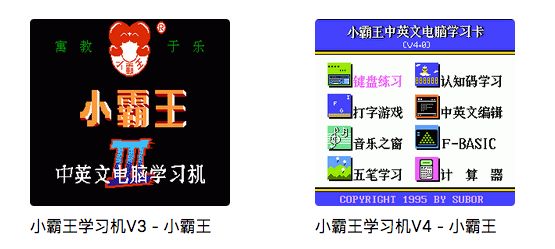 这里面我也只听过小霸王学习机,其他一概不认识,不过可以理解为那个年代各种品牌的诺亚舟、文曲星、步步高点读机、家教机什么的……