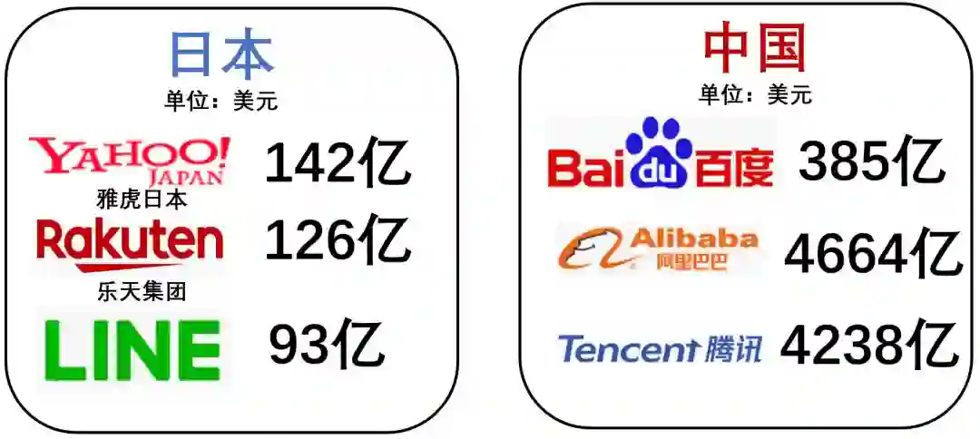2002年,雅虎日本在东京证券交易所上市,2004年,雅虎日本的市值达到500亿美元,反超雅虎全球的330亿。同个时间大洋彼岸的网易才50亿美元,腾讯11亿美元。