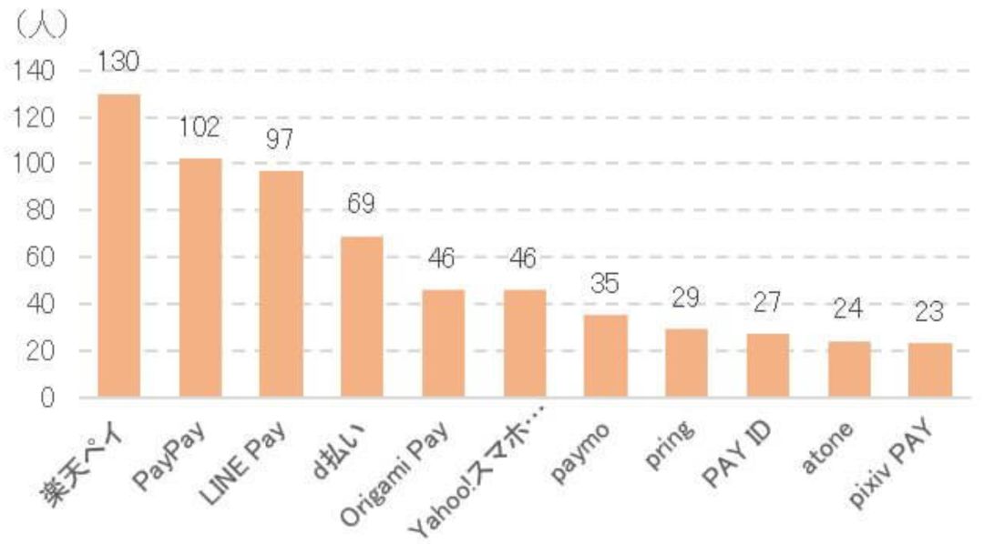 前三名是电商乐天集团旗下的乐天支付,雅虎日本和软银联合推出的PayPay,以及社交应用Line旗下的 LINE Pay。