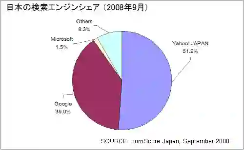 到了2008年,雅虎日本的搜索市场份额仍远远超过谷歌。