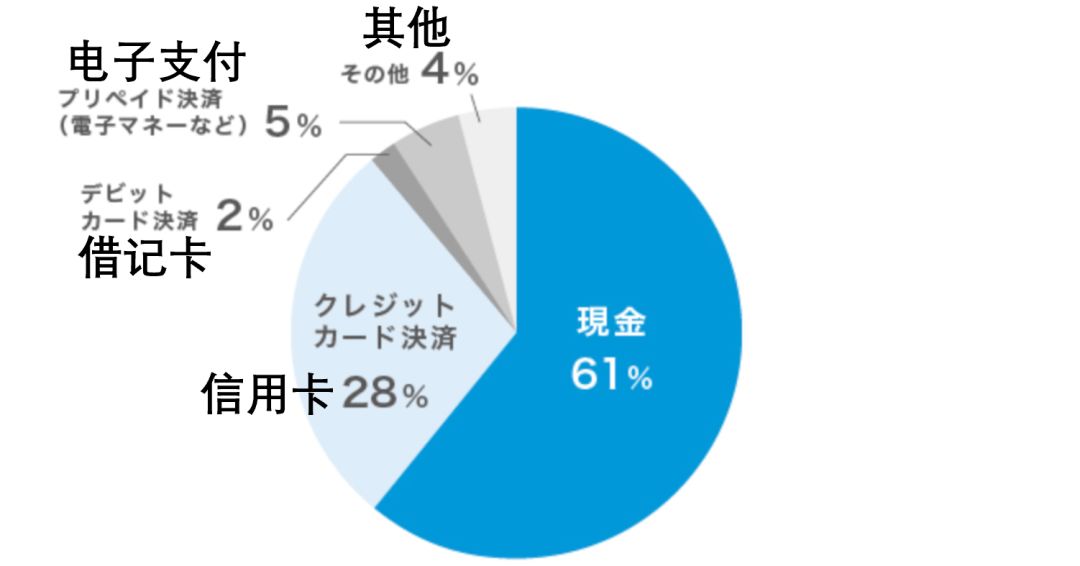 日本人最常用的支付方式还是现金,根据日本调研公司Net Protections 2018年的数据,有 61% 的人最常用现金支付,而电子支付仅有 5%。