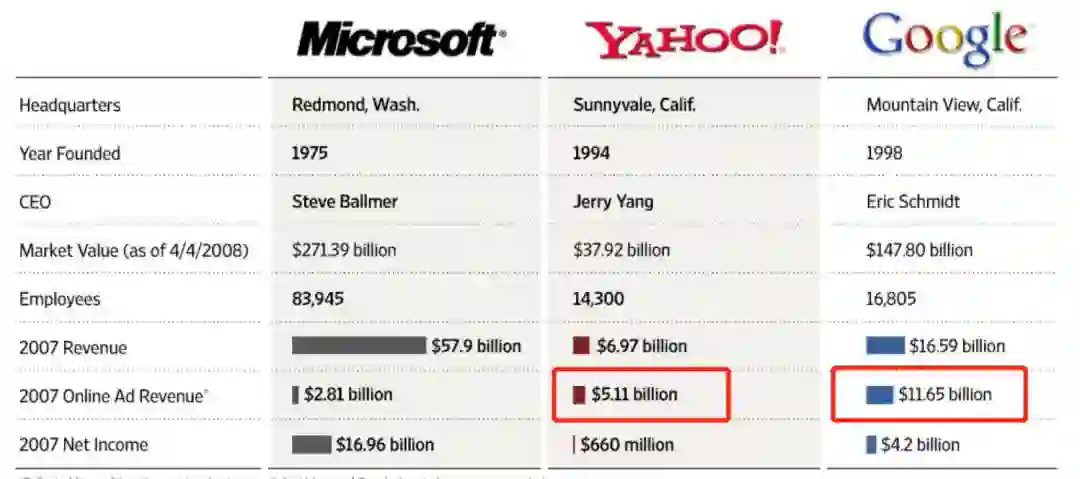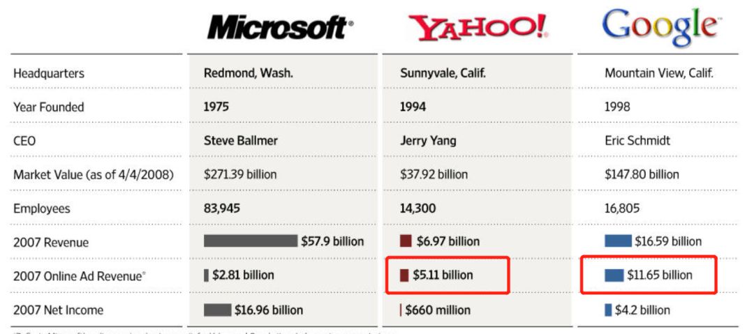 到了2007年谷歌的线上广告收入已经是雅虎的2倍。